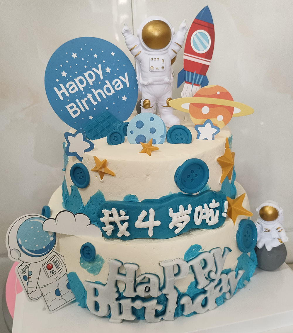 生日蛋糕 太空星球款 火箭航天员 宇航员 双层生日蛋糕 水果夹心 高品质蛋糕