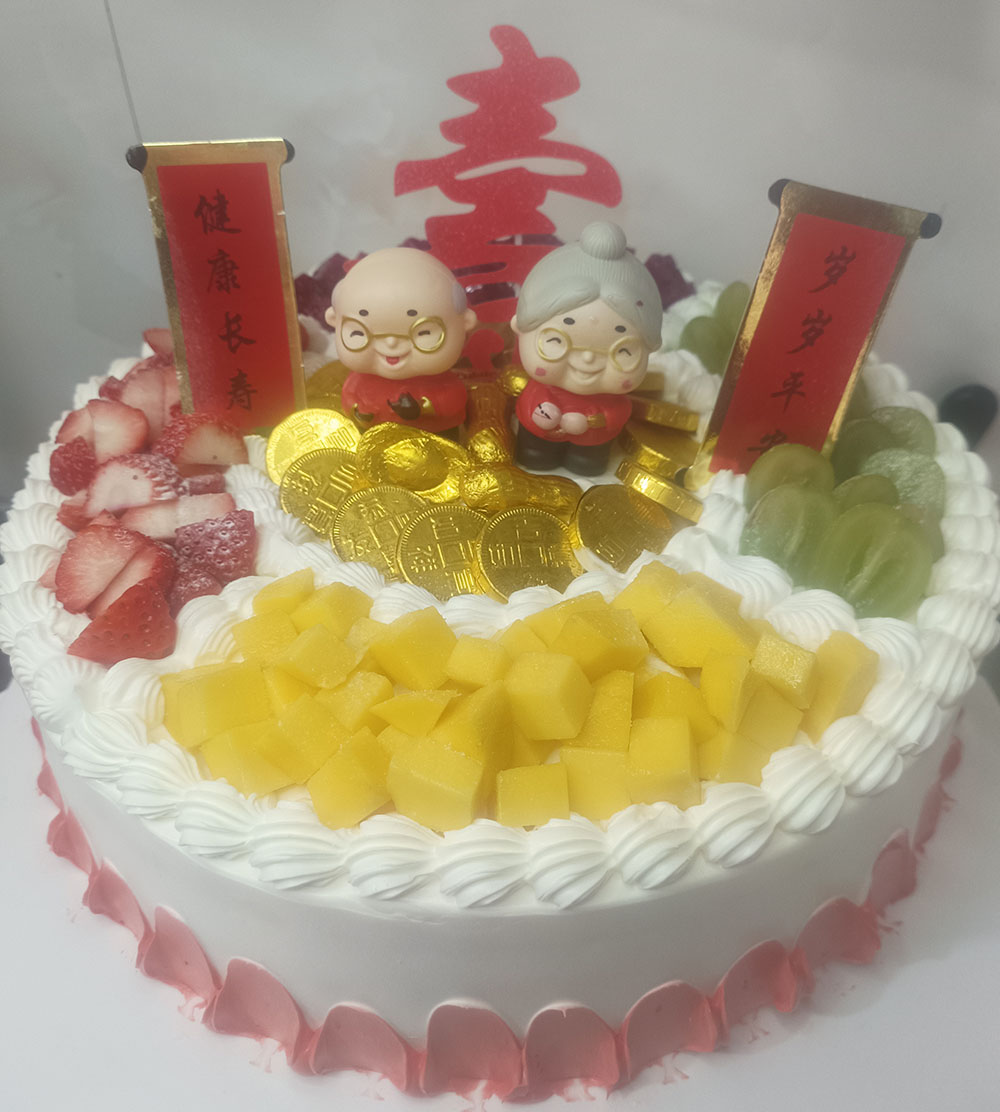 单层生日蛋糕 金元宝祝寿 健康长寿款 福气满满 带夹心 单层生日蛋糕 高品质蛋糕