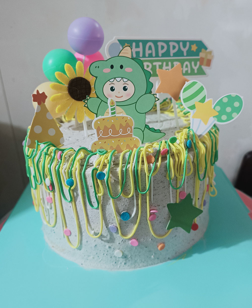 单层生日蛋糕 儿童蛋糕 绿色条纹款 快乐卡天天开心 带夹心 高品质蛋糕